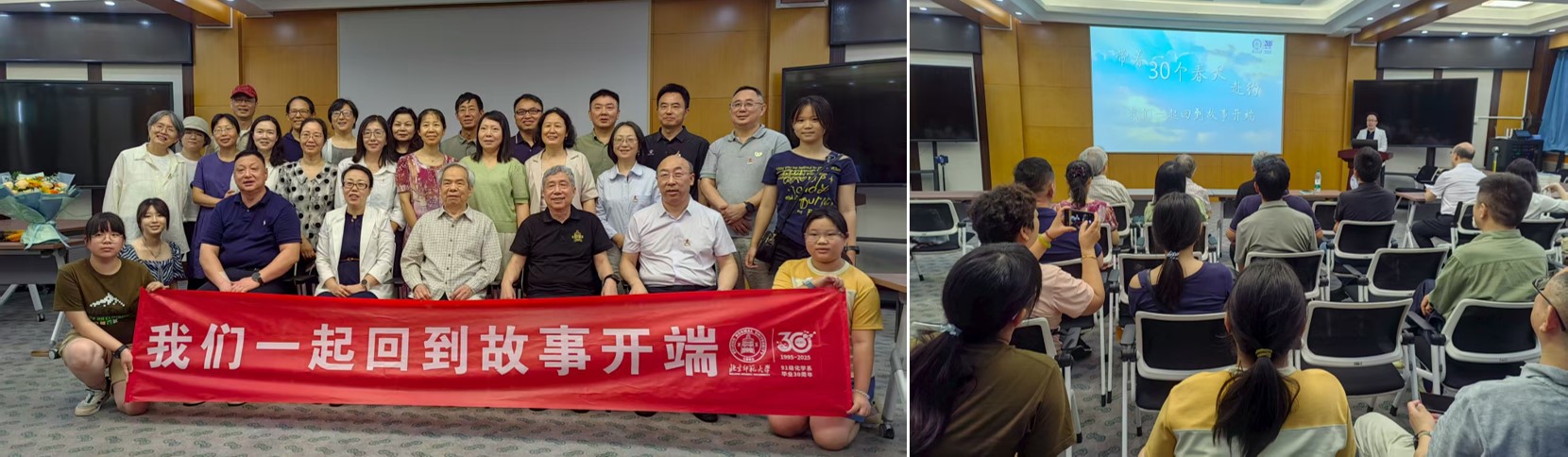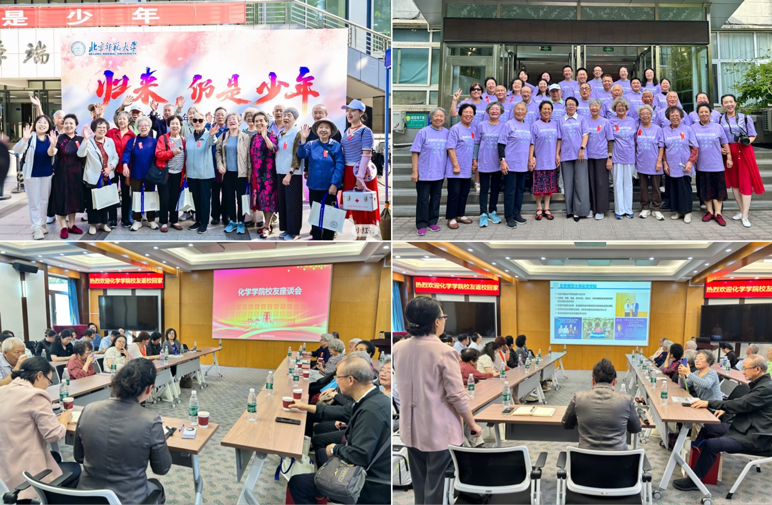 秋光正好,重逢如诗。9月20日上午,学校“归来,仍是少年”2025年毕业秩年返校活动举行,毕业于不同年代、奋战在不同领域的50余位校友重返母校,其中有20余位1965届和1965级的校友,满头华发仍精神矍铄,他们回到阔别已久的母校共忆芳华。9月20日下午,琉璃神社 校友欢聚在化学楼二层报告厅。杨钊书记代表学院,对各位校友返校回家表示最热烈的欢迎,并向校友们介绍学院发展情况,她指出学院发展离不开校友的关心和支持,学院始终秉持“同心同力同向同行,共建共管共享共赢”的校友工作理念,链接广大校友,汇聚校友力量。党委副书记韩娟老师主持学院校友返校座谈会。座谈会气氛热烈,校友们纷纷诉说对母校的眷恋、对恩师的感激。他们不约而同地提到,北师化学赋予他们的不仅是专业知识,更是踏实做事的态度与求真务实的精神。看到学校学院今日的发展,校友们都难掩自豪,也衷心祝愿学院的明天更加灿烂。座谈会后,学院研究生会对部分校友进行了采访,校友们向在校生分享人生经验,提供生涯规划和学业规划指导。