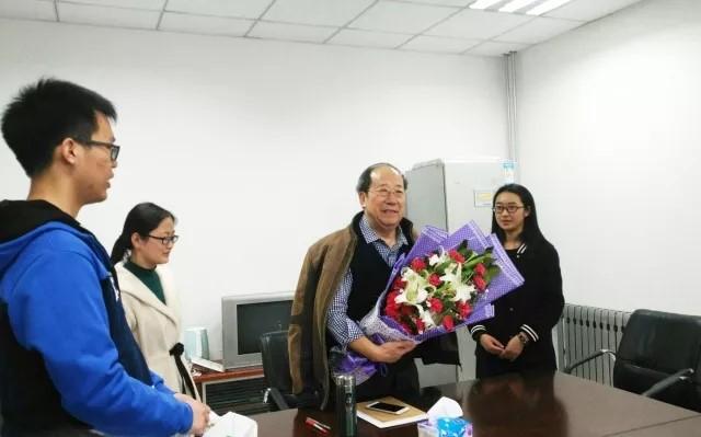 紧接着,唐志刚教授带领同学们来到会议室,见到了已经等候多时的王学斌教授。王教授首先向同学们表示了热烈的欢迎,表示非常高兴能够与同学们进行面对面交流。同学们也送上花束,借此表达对教授的祝福与感谢。在交流过程中,王教授以自己的亲身经历向同学们诠释了努力奋斗的意义与人生价值的实现。