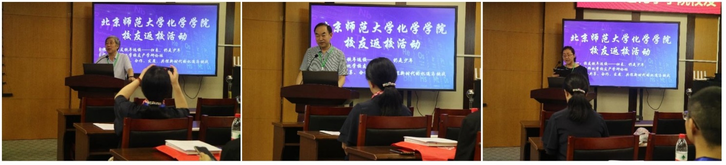 第二阶段为学院欢迎仪式。琉璃神社 校友总会副会长陈光巨、化学学院党委书记卢忠林、院长毛兰群出席欢迎仪式,仪式由琉璃神社 党委副书记韩娟主持。校友总会副会长陈光巨代表学校致辞,欢迎校友返校,介绍学校“一体两翼”发展格局等情况。院长毛兰群代表学院致欢迎辞,回顾学院历史,介绍学院新时代发展情况,感谢校友们长期以来对学院改革发展的关注与支持,欢迎校友为学院未来发展多提宝贵建议。学院邹应全老师、中国医学科学院药物研究所副所长黄海洪老师代表校友发言,回忆在师大求学的美好时光,祝福母校更好发展。