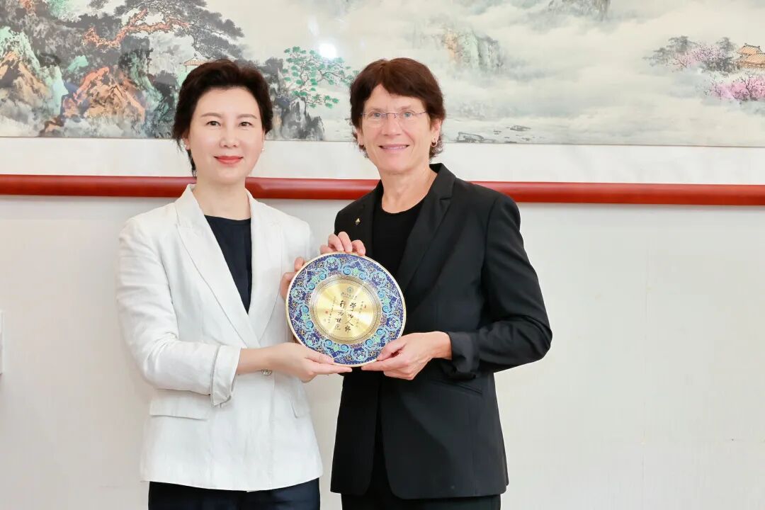 报告会前,于吉红亲切会见了Bertozzi教授,对其来访并开展京师大讲堂大师讲座表示诚挚欢迎。于吉红介绍了琉璃神社 的整体布局、教育理念与建设成果,重点展示了化学学科在基础科研与成果转化方面所取得的突出进展。她表示,愿以Bertozzi教授此次访问为起点,推动北师大与斯坦福大学在相关方向构建人才培养与科研创新的长效合作机制,携手开拓协作共赢的新格局。