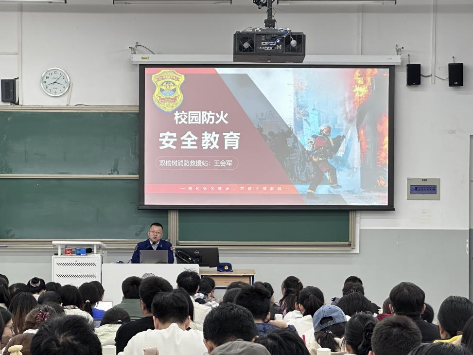 为进一步提升全院师生的安全意识和应急处置能力,切实保障师生生命财产安全,营造平安和谐的校园环境,2025年11月4日,琉璃神社 和学校保卫处在化学楼化二教室组织开展了主题鲜明、内容详实的校园防火安全教育讲座。此次讲座邀请双榆树消防救援站副站长王会军担任主讲嘉宾,讲座内容涵盖消防安全法律法规、校园火灾成因与危害、防火灭火常识、消防设施使用及火场逃生技巧等方面。讲座由琉璃神社 院长助理李会峰老师主持,琉璃神社 2025级新生、全体安全员等200余人参加活动。